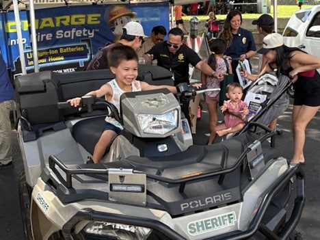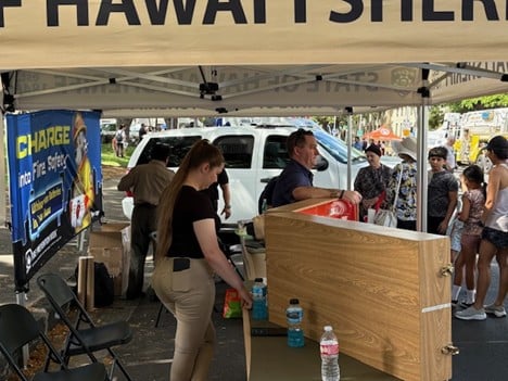 Special recognition goes to the State’s newly appointed Fire Marshal, Dori Booth, who supported the department’s outreach and highlighted Fire Prevention Week. She provided valuable information on lithium-ion battery safety and distributed stickers and magnets for the keiki. The Honolulu Fire Department also stopped by to assist, helping to broaden the event’s reach and impact.