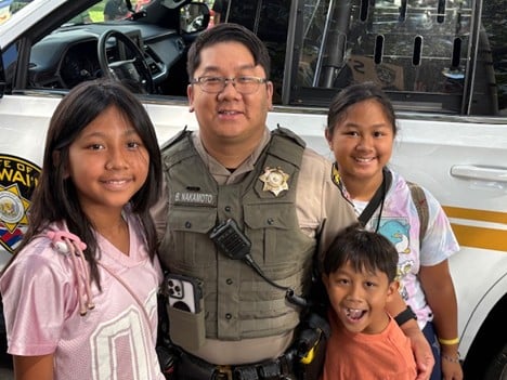 This initiative is led by Lieutenant Michael Oakland, Commander of Program Support (Community Relations, Peer Support, Chaplain Corps, Sheriff Reserves, Records, and Central Receiving Desk). The department extends its appreciation to Lt. Oakland for his leadership, coordination, and commitment to strengthening community partnerships. His efforts ensure that keiki and families receive positive, meaningful opportunities to learn about public safety.