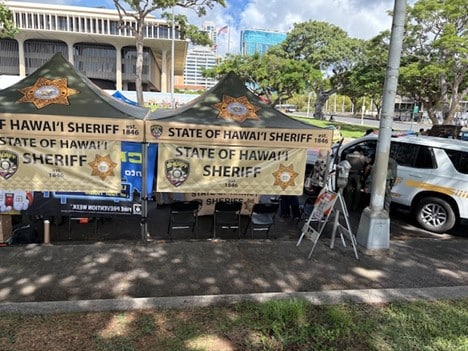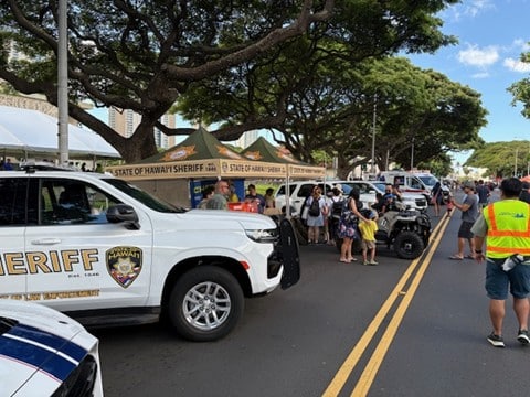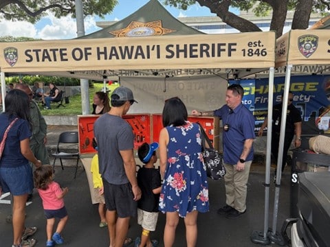 The Department of Law Enforcement proudly participated in the 32nd Annual Children and Youth Day on Sunday, October 5, 2025, held throughout the Capitol Complex. The department’s booth experienced a steady stream of visitors throughout the entire event, with keiki, parents, and grandparents engaging with displays, equipment, and safety information. This year marked one of the department’s most successful showings, with families lining up to learn more about the work deputies do every day.
